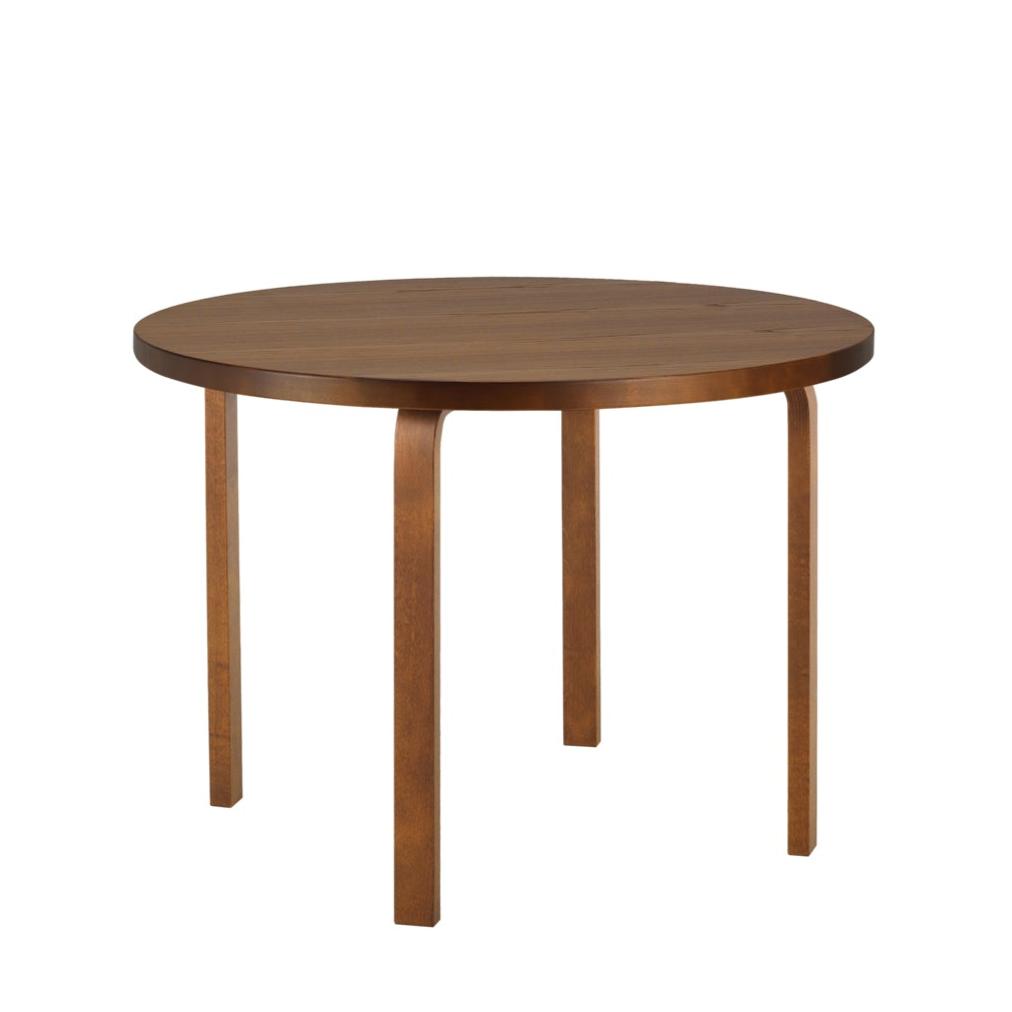 高い汎用性を誇るアアルトテーブルに、味わい深いウォールナットステインの特別仕様が登場します。この特別仕様は、復刻を果たした「アームチェア 45」に合わせて選ばれました。双方を組み合わせると、心地良くも優雅で豪華なダイニングセットになります。円形「テーブA 90A」は、ゆったりと3人がけでも、脚の間にぴったりと椅子を収めた4人がけでもダイニングの主役としておすすめです。