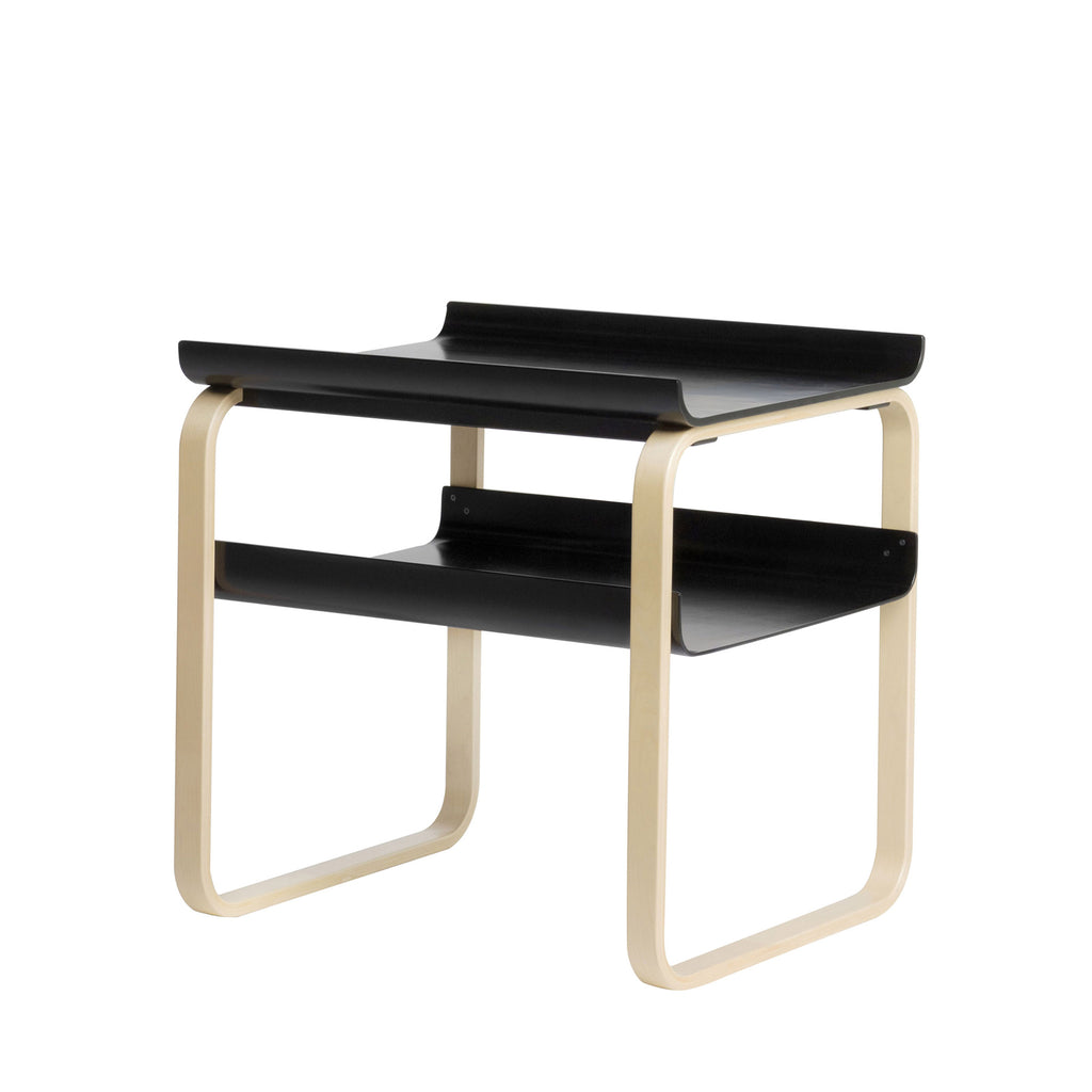 「サイドテーブル 915」のループ型のフレームは、アルテックの伝統的な技術である「ラメラ曲げ木」を使い、合板でありながらまるで無垢の木のように美しく滑らかです。ループの上と下には、バーチ材によるプライウッドの天板が取り付けられ、物が落ちにくいよう、天板の縁が上に反るよう工夫されています。頑丈かつ軽量なサイドテーブル 915は、1932年、フィンランドの結核療養所「パイミオ サナトリウム」のプロジェクトのために、アルヴァ・アアルトがデザインしました。アアルト特有の流れるように有機的な曲線が美しく、独自の存在感を放っています。
