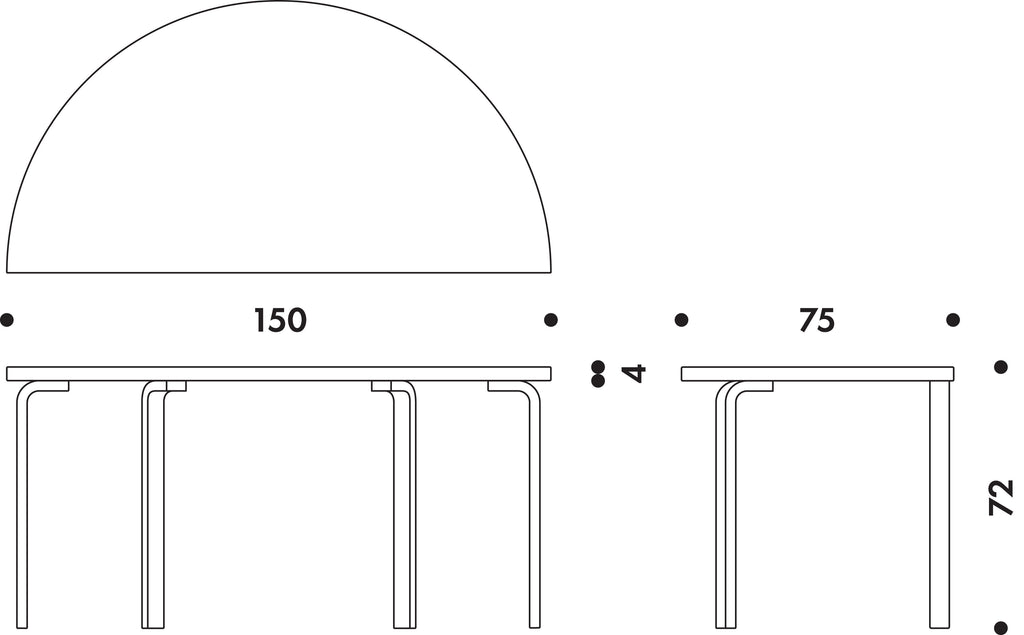 半円形のアアルトテーブルは、そのユニークな形により、廊下や窓際の壁につけたコンソールテーブルとして、コンパクトな空間で活躍します。 また2つの半円テーブルで大きなダイニングテーブルにしたり、長方形の「テーブル 81A(150×75cm)」や「テーブル 82A(150 x 85)」と組み合わせて、さまざまなテーブルセッティングが可能です。