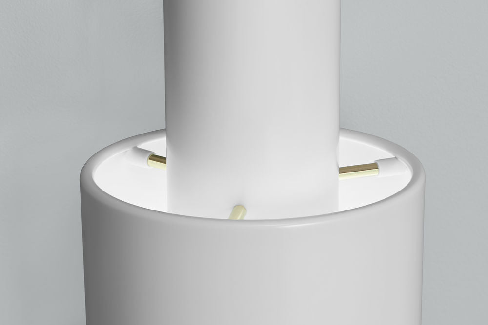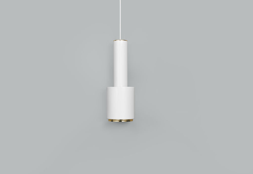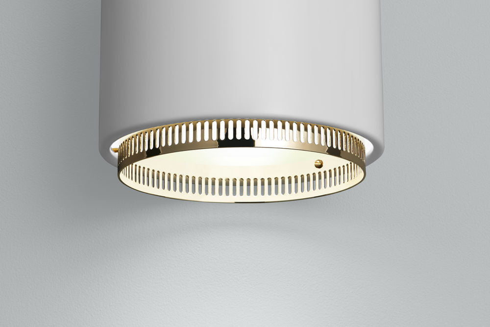 その形から「手榴弾」とも称される「ペンダント A110 手榴弾」は、1952年にアアルトがフィンランド技術協会のプロジェクトのためにデザインし、アアルトの代表的な建築の一つであるセイナッツァロ役場の会議室でも使用されていました。スチール製の本体と、ランプシェードの下に穴をあけた真鍮のリングを取り付けた構造により、光は輪のように拡散され、柔らかく温かな光として放たれます。 - Materials
