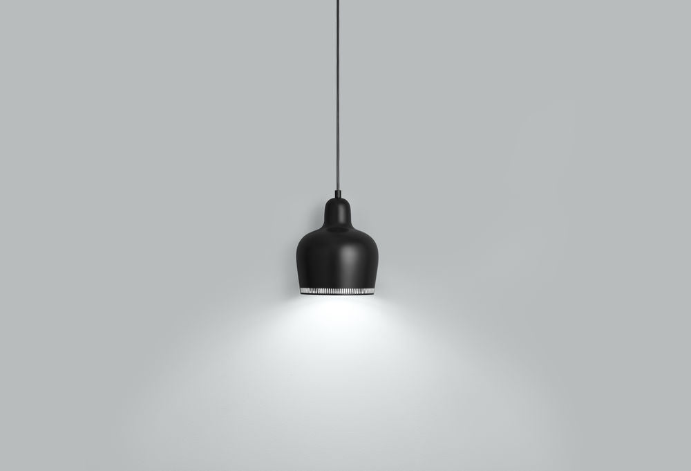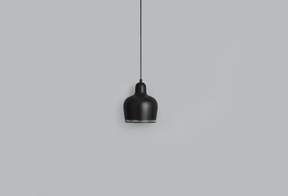 「ゴールデンベル」という愛称で親しまれるアルヴァ・アアルトのデザインによるアイコン的ペンダントランプ。その姿は灯りがともっていてもいなくても、まるで彫刻のように美しい佇まいをしています。接合を施さない一つの真鍮により形作られるは、下に向かった開口部から光が放たれることにより眩しさを抑え、シェードに刻まれた穴から光が輪のように分散されるよう機能的にデザインされています。1936年、ヘルシンキにあるサヴォイレストランの内装のために考案され、翌年、パリ万博のフィンランドパビリオンで発表された機能的な構造から放たれる温かく柔らかな光とフォルムの美しさは、まさにアルヴァ・アアルトの哲学を体現した姿といえます。 - Materials