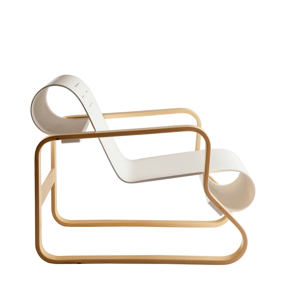 いつの時からか私達の暮らしに当たり前のように存在しているアームチェアのデザインに、軽やかで有機的なカーブを描くフレームを組み合わせた「アームチェア 41 パイミオ」は、家具デザインの歴史に衝撃と革命をもたらしました。ゆるやかなカーブを描く背もたれと座面を兼ねる合板は、弾力性があり腰かける人の体を受けとめてくれます。木材は時間の経過とともに変化し、それぞれの個性に応じて歪みが生じてくるため、アームチェア 41 パイミオが生まれた当時から、肘掛けを兼ねたフレームは、分厚いひとつのフレームを半分に分割して両端に設置する方法で製造されています。そのため、時を経ても、座面を両端で支えるフレームのバランスは崩れないのです。1932年、フィンランド、パイミオの結核患者のための療養所のためにデザインされたアームチェア 41 パイミオは、現代においてもアルヴァ・アアルトの傑作のひとつとして数えられています。