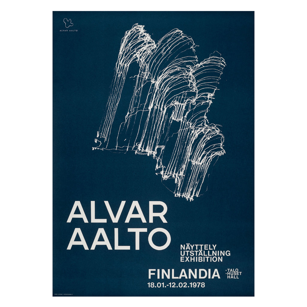 「ポスター FINLANDIA HALL」は、1978年にヘルシンキのフィンランディアホールで開催されたアルヴァ・アアルト没後に行われた展覧会用のポスターです。ポスターには、フィンランディアホールのコンサートホールのためにデザインされた木製のレリーフが描かれてます。ポスターのデザインは、アアルトスタジオで長年勤務した建築家カールロ・レッパネン(Kaarlo Leppänen)が手掛けました。