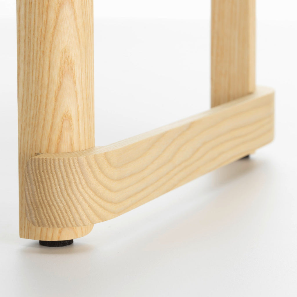 無垢材を用いたシンプルなデザインの「アトリエ バースツール」は、職人の精巧な技術と研究により生み出されました。重さは約4キログロムと軽量で、全体のフォルムも足置きもコンパクトなため、持ち運びが簡単です。アトリエバースツールは、前後左右対称で、向きを選ばず好きな位置に座ることができる汎用性の高いデザインです。さらに、三次元的な座面の柔らかなラインと、前脚と後脚を繋ぐ添え木の直線的で幾何学的なラインの組み合わせで構成されています。アルテックのサスティナブルなものづくりへの想いを継承し、調達と輸送に効率の良いイタリア産の木材から製造され、2つのシートハイのバリエーションがあります。