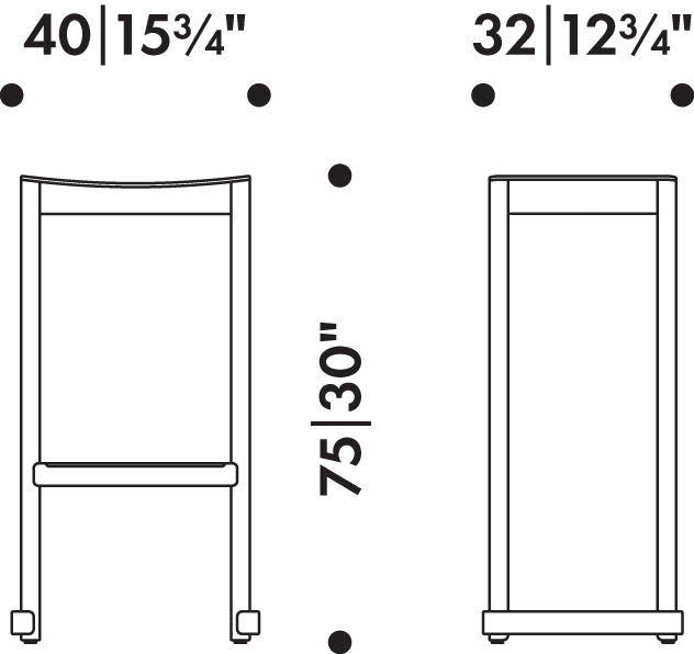 無垢材を用いたシンプルなデザインの「アトリエ バースツール」は、職人の精巧な技術と研究により生み出されました。重さは約4キログロムと軽量で、全体のフォルムも足置きもコンパクトなため、持ち運びが簡単です。アトリエバースツールは、前後左右対称で、向きを選ばず好きな位置に座ることができる汎用性の高いデザインです。さらに、三次元的な座面の柔らかなラインと、前脚と後脚を繋ぐ添え木の直線的で幾何学的なラインの組み合わせで構成されています。アルテックのサスティナブルなものづくりへの想いを継承し、調達と輸送に効率の良いイタリア産の木材から製造され、2つのシートハイのバリエーションがあります。