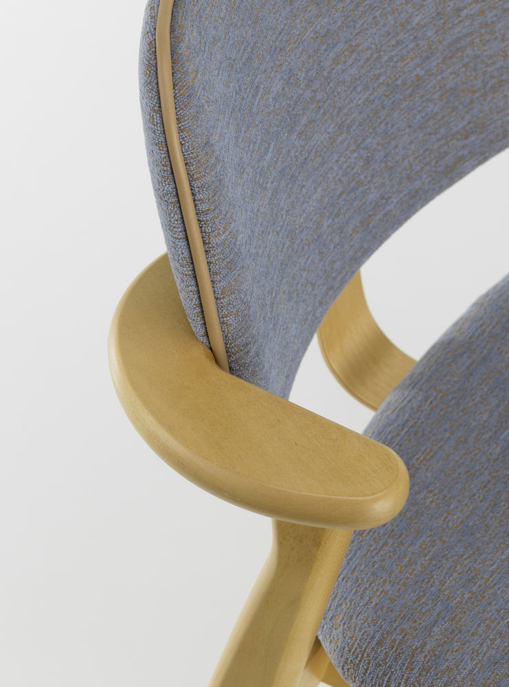 ドムス チェア バーチ ハニー ステイン 背座 ブルー/オークル ファブリック