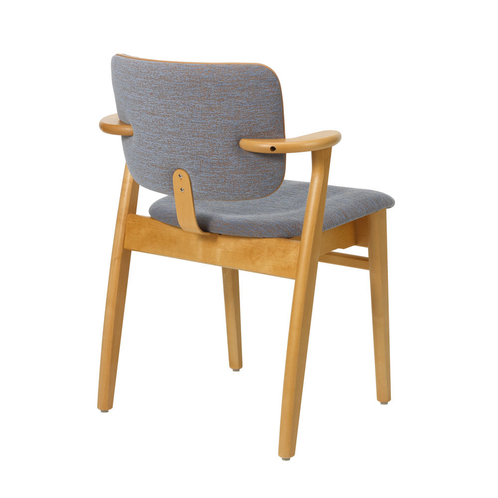 「ドムス チェア」は、1946年、イルマリ・タピオヴァーラにより、ヘルシンキの学生寮「ドムス アカデミカ」のためにデザインされました。三次元に曲線を描く座面は、長期間座っても疲れにくく、特徴的な小さめの肘掛けは、肘置きとしての役割を果たしながらも、腰かける人の動きを妨げず、テーブルに椅子を引き寄せやすいよう考慮されています。