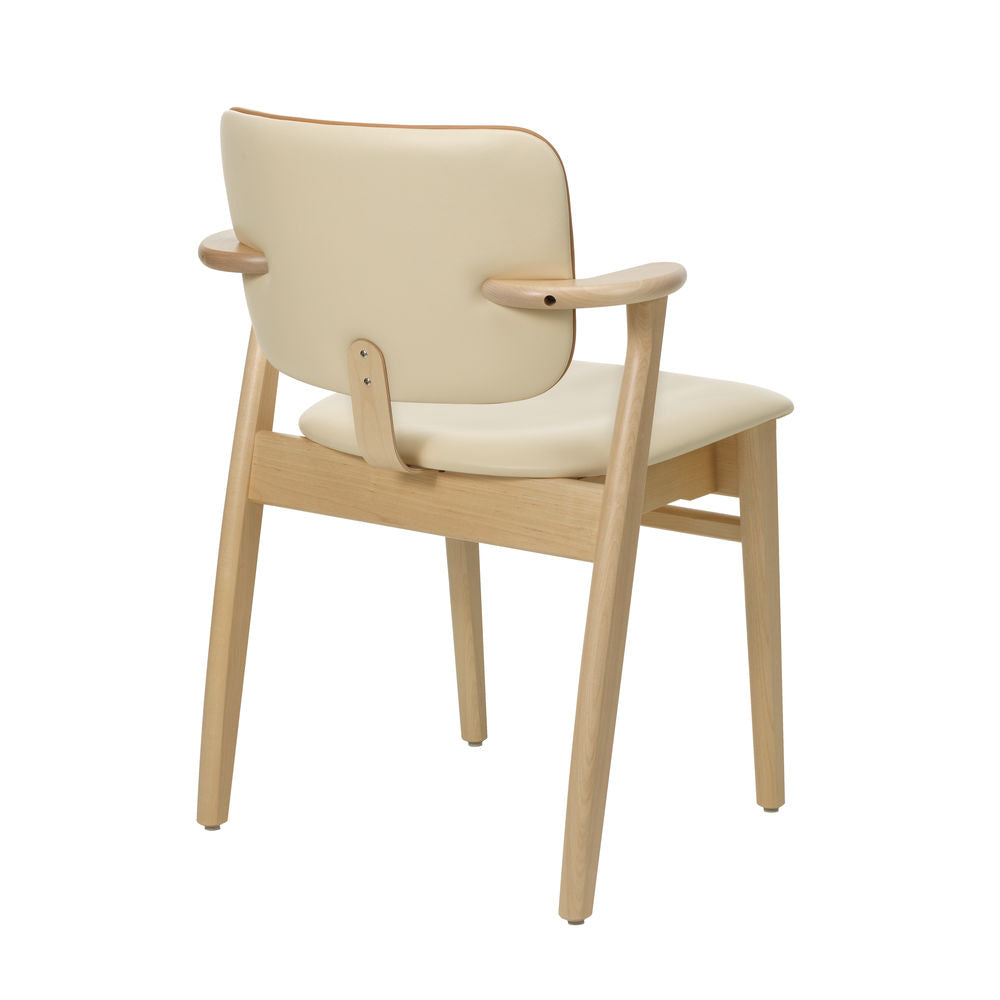 「ドムス チェア」は、1946年、イルマリ・タピオヴァーラにより、ヘルシンキの学生寮「ドムス アカデミカ」のためにデザインされました。三次元に曲線を描く座面は、長期間座っても疲れにくく、特徴的な小さめの肘掛けは、肘置きとしての役割を果たしながらも、腰かける人の動きを妨げず、テーブルに椅子を引き寄せやすいよう考慮されています。