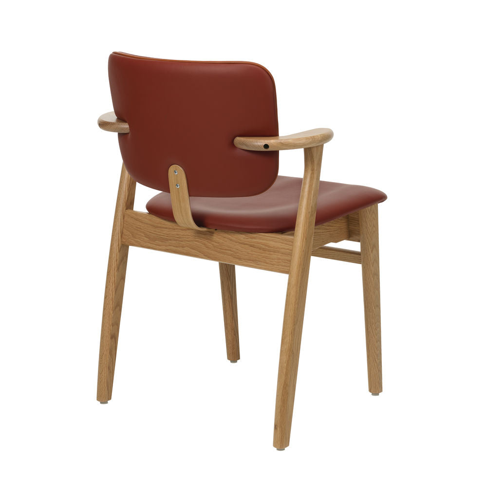 「ドムス チェア」は、1946年、イルマリ・タピオヴァーラにより、ヘルシンキの学生寮「ドムス アカデミカ」のためにデザインされました。三次元に曲線を描く座面は、長期間座っても疲れにくく、特徴的な小さめの肘掛けは、肘置きとしての役割を果たしながらも、腰かける人の動きを妨げず、テーブルに椅子を引き寄せやすいよう考慮されています。