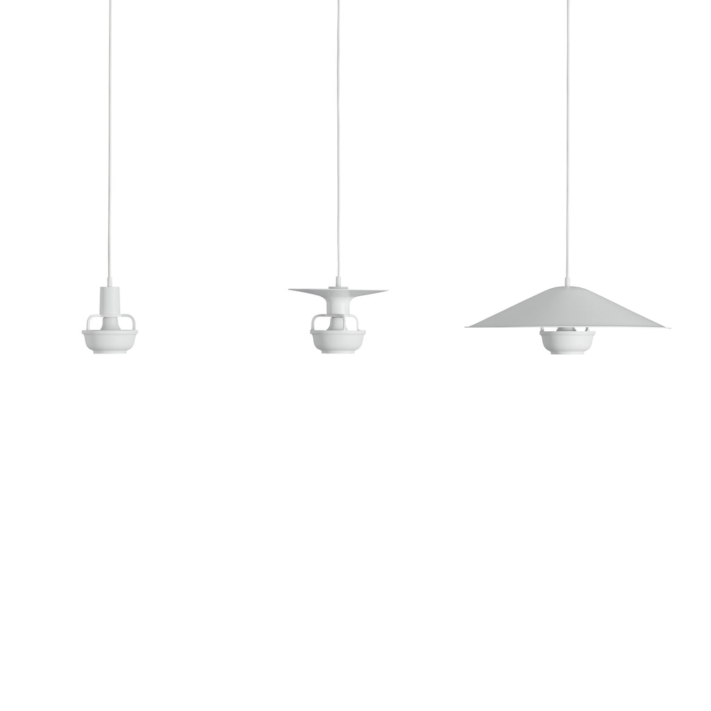 籠状の中心部から直接光を下方に投射し、間接光を上方へと分散させる基礎構造にシェードを組み合わせた「コリ ペンダント・ディスク シェード」。薄く広がったシェードの曲面が光を受け止め下方に反射することで、より広い範囲を照らします。小さめのテーブルやカウンター上の一般照明として、単独または複数で空間を温かく演出します。 - Materials