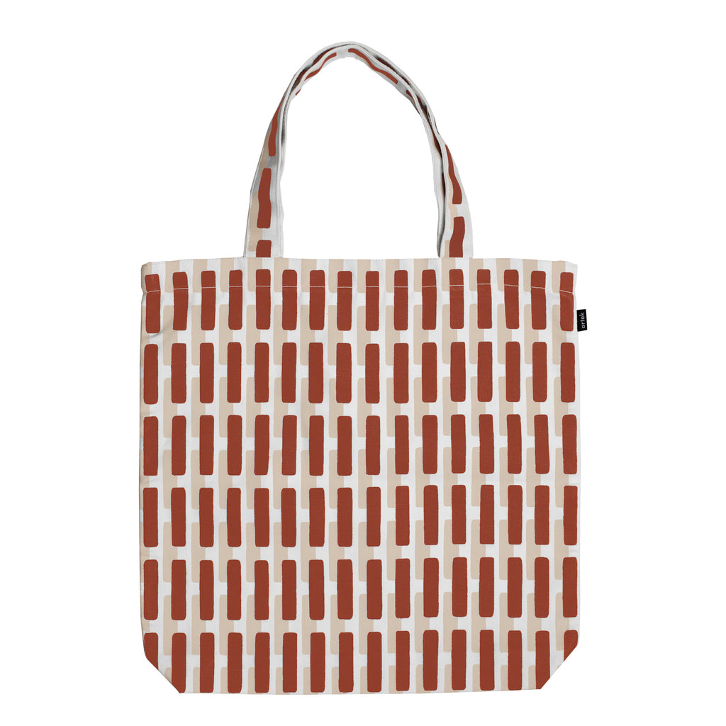 アルヴァ・アアルトが1954年にデザインしたテキスタイルパターン「シエナ」は、アアルト夫妻が幾度も訪れたイタリアの都市の街並みと、ドゥオモ広場に位置するシエナ大聖堂に着想を得て描かれたと言われています。規則的でありながらも手描きによる柔らかさが感じられ、あらゆるアイテムに応用されています。「ブリック / サンド シャドー」は、ムーラッツァロ島の実験住宅と呼ばれる夏の家や、マサチューセッツ工科大学内ベーカーハウス学生寮などに使われた赤レンガを表現しています。