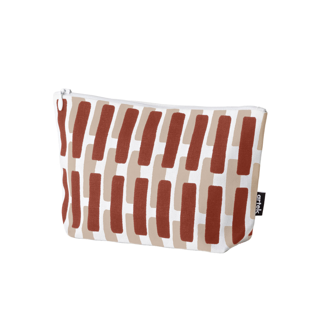 アルヴァ・アアルトが1954年にデザインしたテキスタイルパターン「シエナ」は、アアルト夫妻が幾度も訪れたイタリアの都市の街並みと、ドゥオモ広場に位置するシエナ大聖堂に着想を得て描かれたと言われています。規則的でありながらも手描きによる柔らかさが感じられ、あらゆるアイテムに応用されています。「ブリック / サンド シャドー」は、ムーラッツァロ島の実験住宅と呼ばれる夏の家や、マサチューセッツ工科大学内ベーカーハウス学生寮などに使われた赤レンガを表現しています。