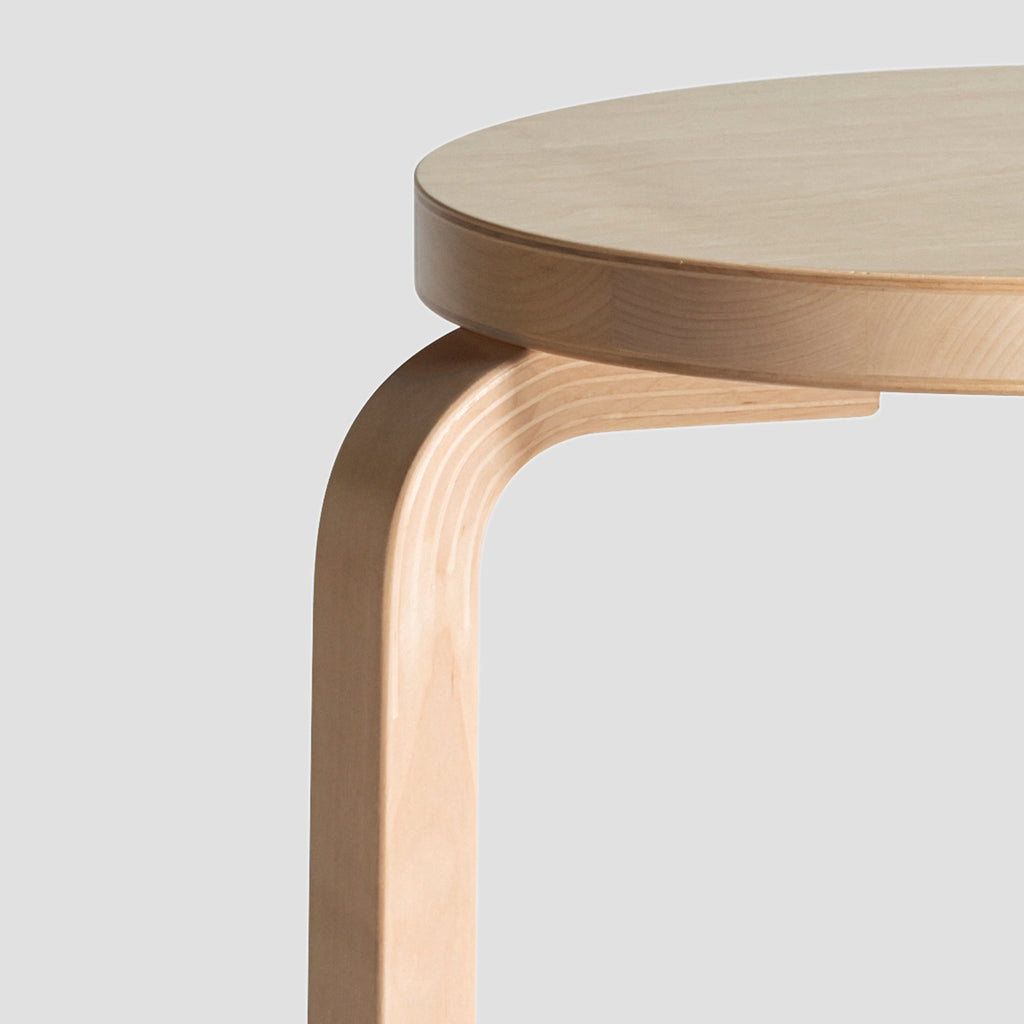 アルヴァ・アアルトにより1933年にデザインされた「スツール 60」は、座面と三本の脚という最小限の要素で形作られています。円形の座面の裏に直接脚を取り付けるとてもシンプルな構造で、椅子としてだけでなく、ローテーブルや、インテリアアクセサリーを飾る台として、さまざまな使い方ができます。タワーのように積み重ねることもできるため、収納場所にも困りません。フィンランドのトゥルクにあるアルテックの工場、A-ファクトリーで、42もの製造工程を経て生み出される「スツール 60」は、たくさんの色と仕上げのバリエーションを揃えています。フィンランドの国内外へと出荷された「スツール 60」と四本脚の「スツール E60」は、これまでに数百万脚にのぼり、時を越え、国や文化を越え、世界中で愛され続けています。